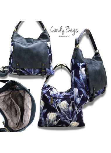 Vivace Artistic Protea Double Buckle Handbag - Black