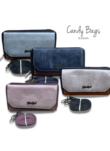 Cotton Road PU Leather Two-Tone Cellphone Wallet with Strap - Grey and Coffee Brown